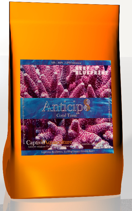 Anticip8 creates a tonic bath for scleractinian corals, encouraging energy production. Regular application of Anticip8 has been shown, in a sample size of over 50,000 individual farmed coral colonies maintained in U.S.-based commercial coral aquaculture facilities, to dramatically improve coral resilience and longevity when coralivorous invertebrates are evident. Application as directed does not impact invertebrates maintained in culture systems (e.g. desirable crustaceans, gastropods, echinoderms, etc.), nor does the formulation leave a residue.  All components are USA-sourced.  Each gallon of tonic solution is sufficient to bathe ~750 - 1,000 coral colonies, depending upon average colony size.