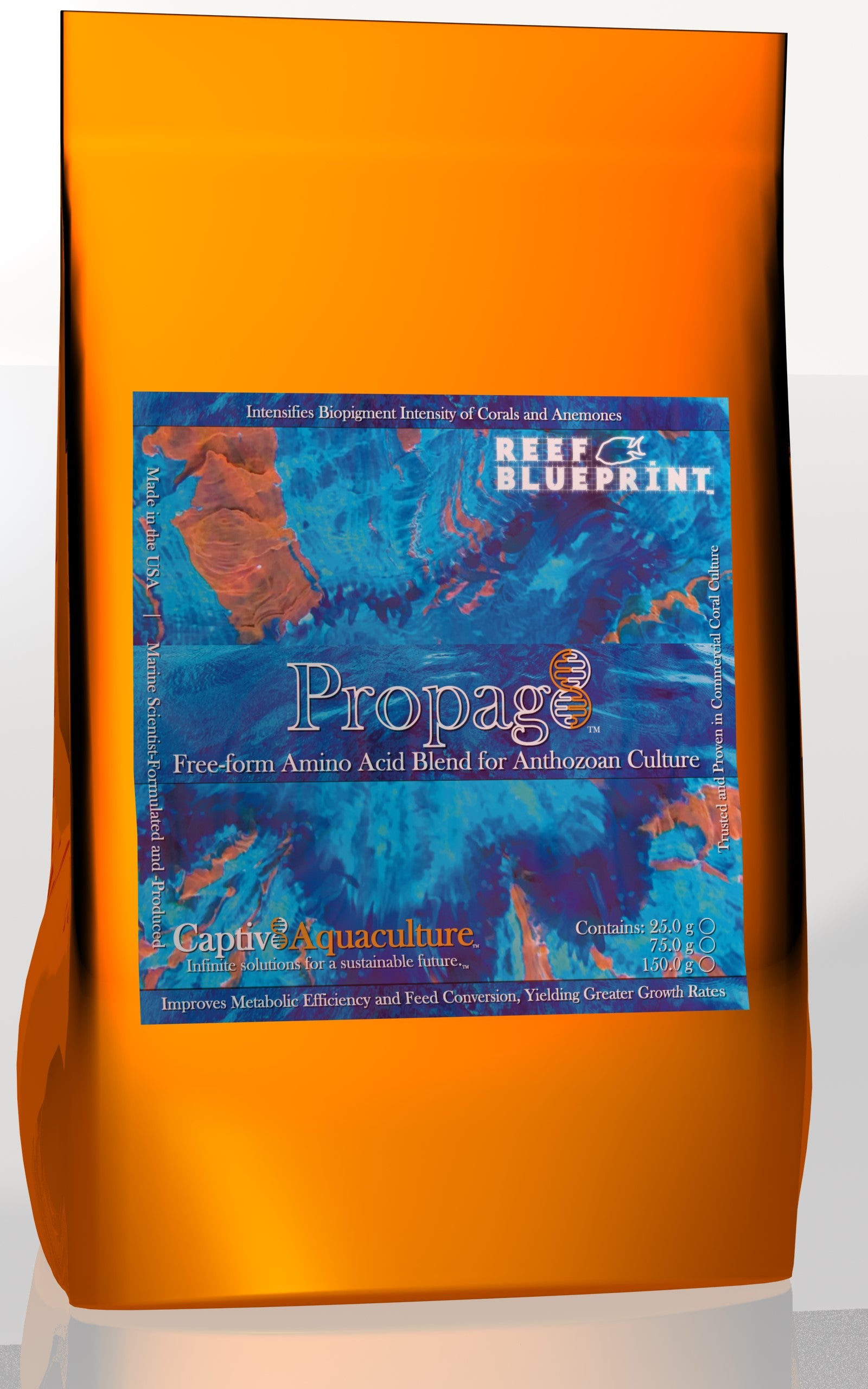 As noted above, dosing rate should be in proportion to stocking density. Follow recommendation of using not more than 0.25 g (one level scoop of the included scoop) per 100 gallons of net system volume weekly, observing appearance of cohort members during this period. Thereafter, modify the amount used per unit system volume as requirements appear to dictate, limiting any increase in dosage to 20% weekly. Regular application of Propag8 will result in increased nutrient uptake; monitor DIN levels and do not permit nitrate to fall below 5 ppm.