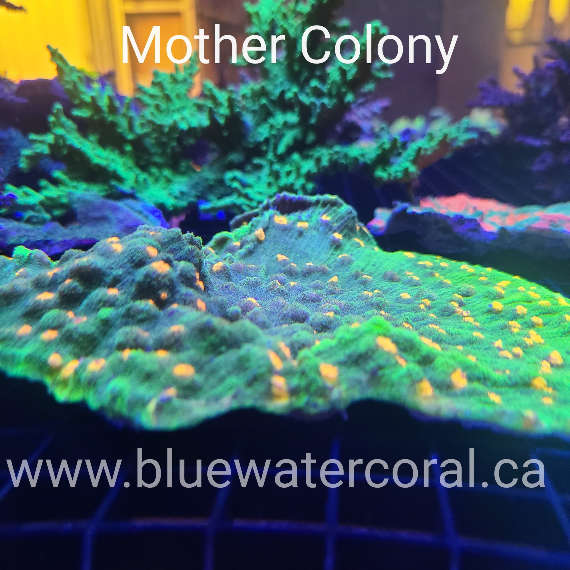 The Space Invader Coral consists of a neon green base and yellow spots which provides a gorgeous contrast to other aquarium corals. Fast and easy to grow.